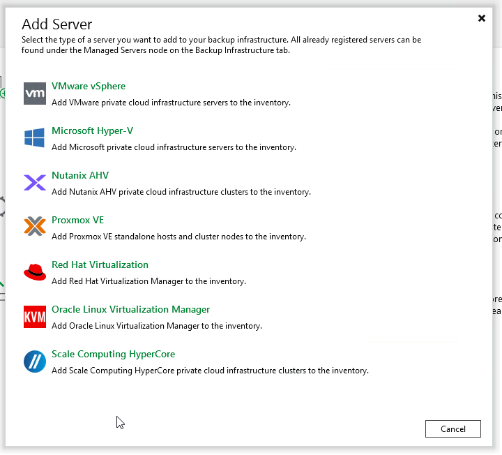 プラグイン導入前は、Veeamのハイパーバイザー一覧にVM Essentialsは表示されません。