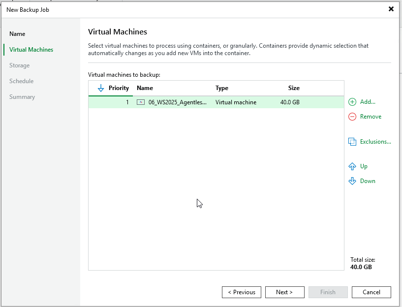 バックアップジョブ作成画面は、VMwareと比較すると若干UIが異なりますが、基本的な流れは同じです。